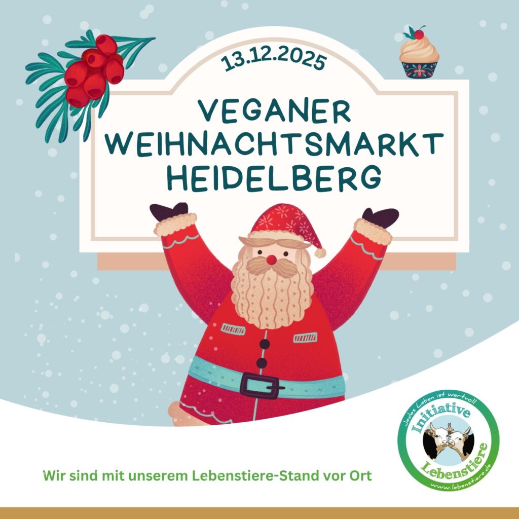 Am 13. Dezember von 13 bis 21 Uhr findet auf dem Heidelberger Friedrich-Ebert-Platz der „Vegane Weihnachtsmarkt Heidelberg“ statt. Entdecke an vielen Ständen vegane Produkte, Infos zu wichtigen Themen, köstliches veganes Essen und wärmenden Glühwein – alles in einer festlichen, nachhaltigen Atmosphäre. Wir sind mit unserem Stand dabei.