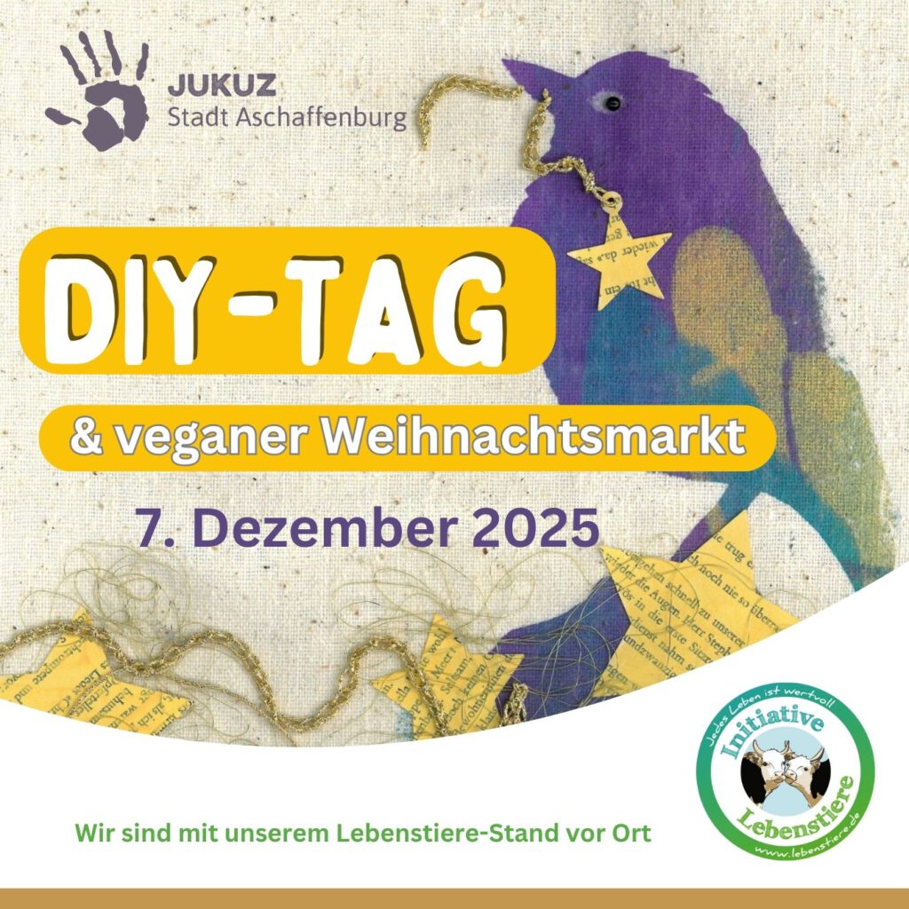 Wir sind mit unserem Lebenstiere-Stand beim veganen Weihnachtsmarkt im JUKUZ Aschaffenburg.