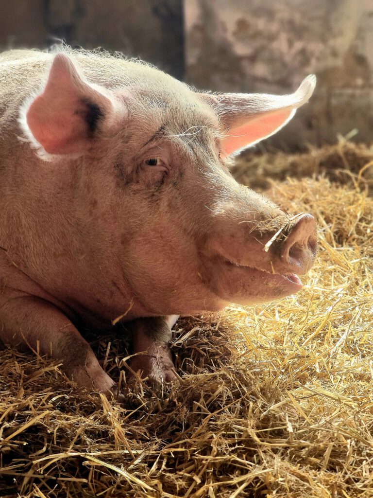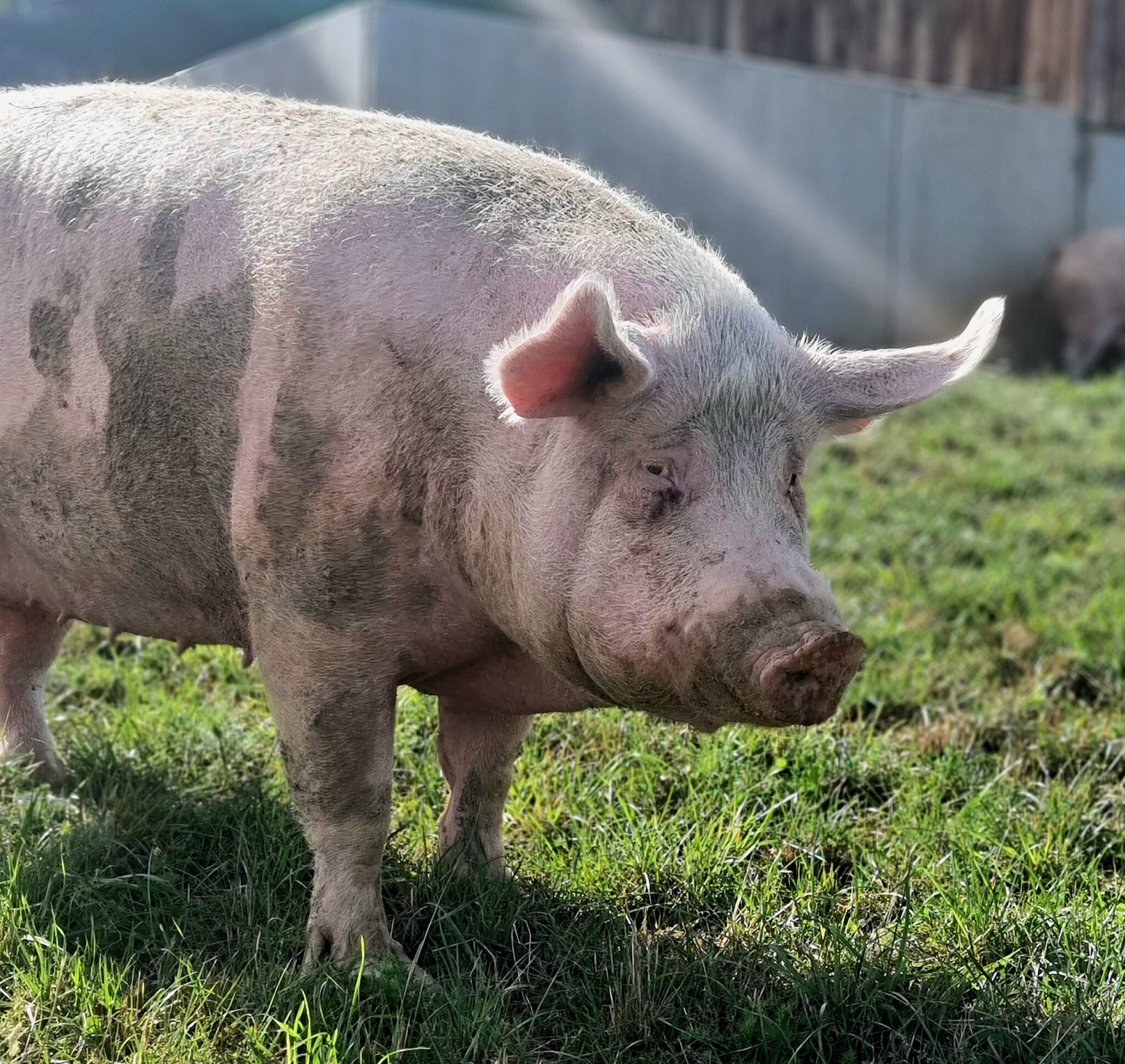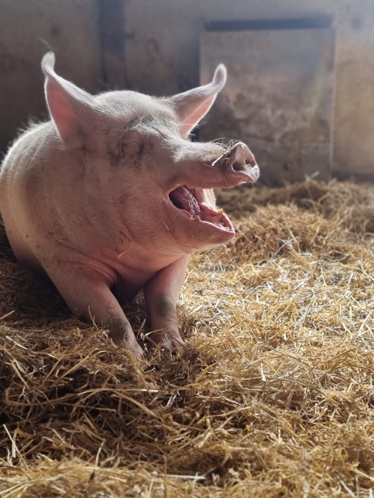 Babsi sollte als kleines Ferkel ein „lustiges“ Hochzeitsgeschenk für ein Brautpaar sein. Die wussten nicht wohin, mit ihr und brachten sie zunächst im Haus unter. Dort konnte sie aber nicht bleiben. Eine Bekannte des Brautpaares fand einen Pensionsplatz bei einem Landwirt, wo sie Babsi unterbrachten. Doch dort ging es ihr nicht gut. Sie freundete sich mit einem anderen Schwein an, das dort lebte. Als die Menschen, zu denen das andere Schwein gehörte, entschieden, ihr Schwein von diesem schlimmen Platz weg zu holen, nahmen sie Babsi mit. Sie hatten ein Mietangebot für ein kleines Häuschen mit Grundstück, wo die Schweine es gut haben sollten. Leider zerschlug sich diese Möglichkeit und so wurde die Scheune zum Übergangszuhause. Leider zog sich die Suche nach einem Lebensplatz weiter hin. Das andere Schwein starb und Babsi Babe wartete allein weiter auf ein gutes Zuhause. Schließlich erreichte uns ihre Anfrage und so zog sie bei uns ein. Babsi Babe ist noch sehr verschüchtert und überfordert mit all den neuen Eindrücken. Wir hoffen, dass sie mit der Zeit aufblühen kann und Menschen besser Patenschaften statt Tiere als Geschenk aussuchen.