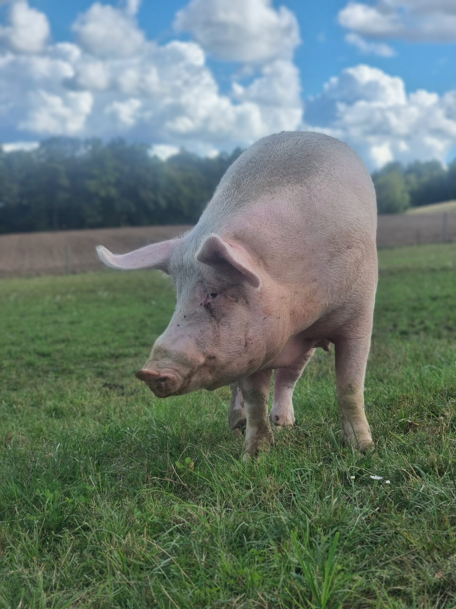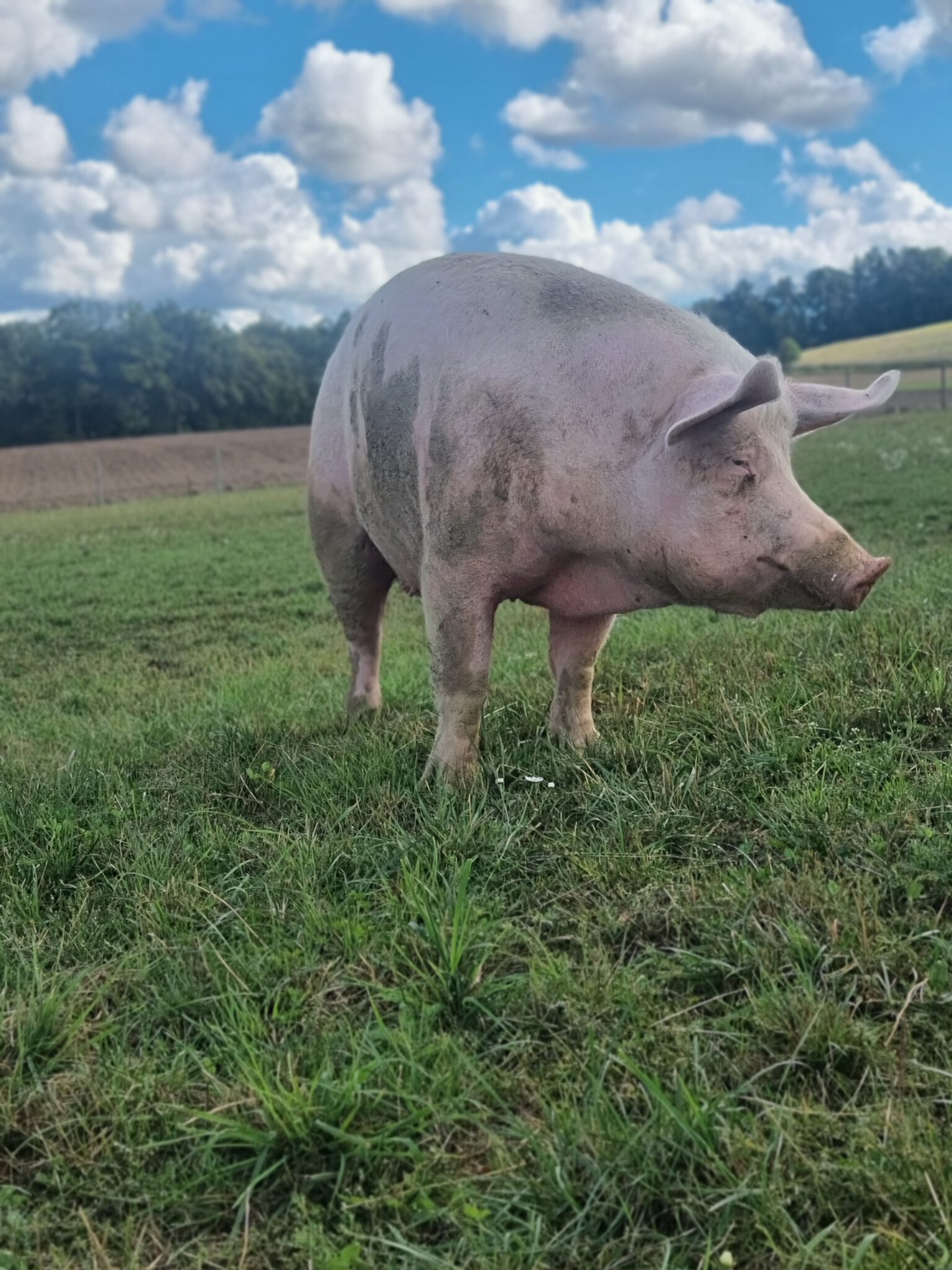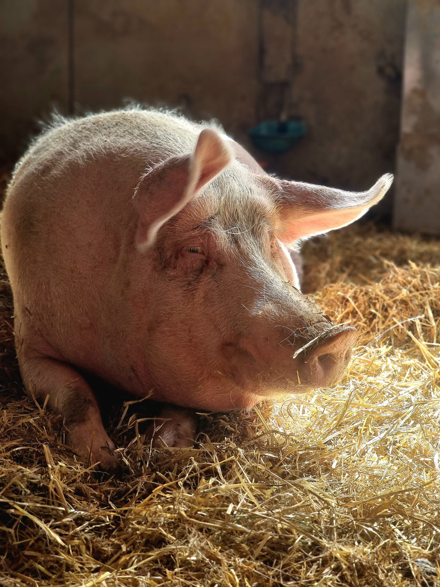 Babsi sollte als kleines Ferkel ein „lustiges“ Hochzeitsgeschenk für ein Brautpaar sein. Die wussten nicht wohin, mit ihr und brachten sie zunächst im Haus unter. Dort konnte sie aber nicht bleiben. Eine Bekannte des Brautpaares fand einen Pensionsplatz bei einem Landwirt, wo sie Babsi unterbrachten. Doch dort ging es ihr nicht gut. Sie freundete sich mit einem anderen Schwein an, das dort lebte. Als die Menschen, zu denen das andere Schwein gehörte, entschieden, ihr Schwein von diesem schlimmen Platz weg zu holen, nahmen sie Babsi mit. Sie hatten ein Mietangebot für ein kleines Häuschen mit Grundstück, wo die Schweine es gut haben sollten. Leider zerschlug sich diese Möglichkeit und so wurde die Scheune zum Übergangszuhause. Leider zog sich die Suche nach einem Lebensplatz weiter hin. Das andere Schwein starb und Babsi Babe wartete allein weiter auf ein gutes Zuhause. Schließlich erreichte uns ihre Anfrage und so zog sie bei uns ein. Babsi Babe ist noch sehr verschüchtert und überfordert mit all den neuen Eindrücken. Wir hoffen, dass sie mit der Zeit aufblühen kann und Menschen besser Patenschaften statt Tiere als Geschenk aussuchen.
