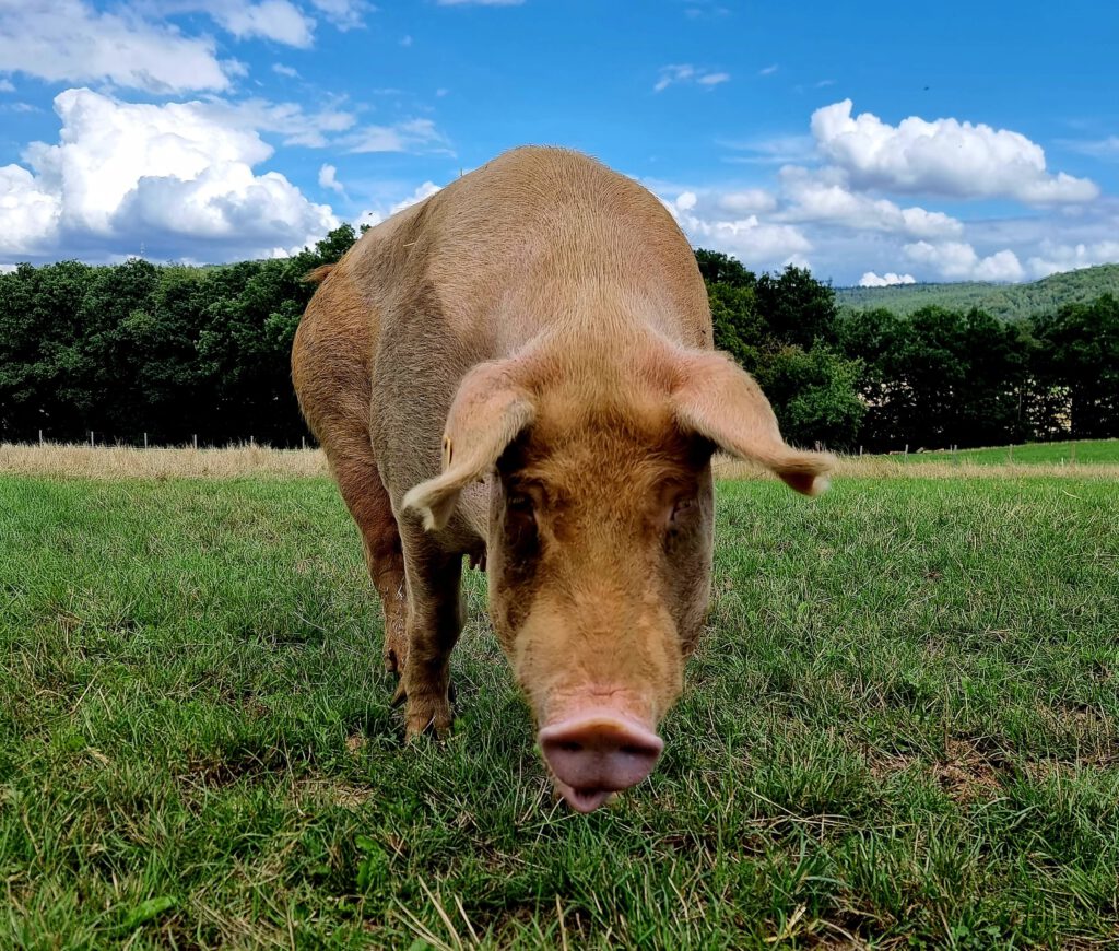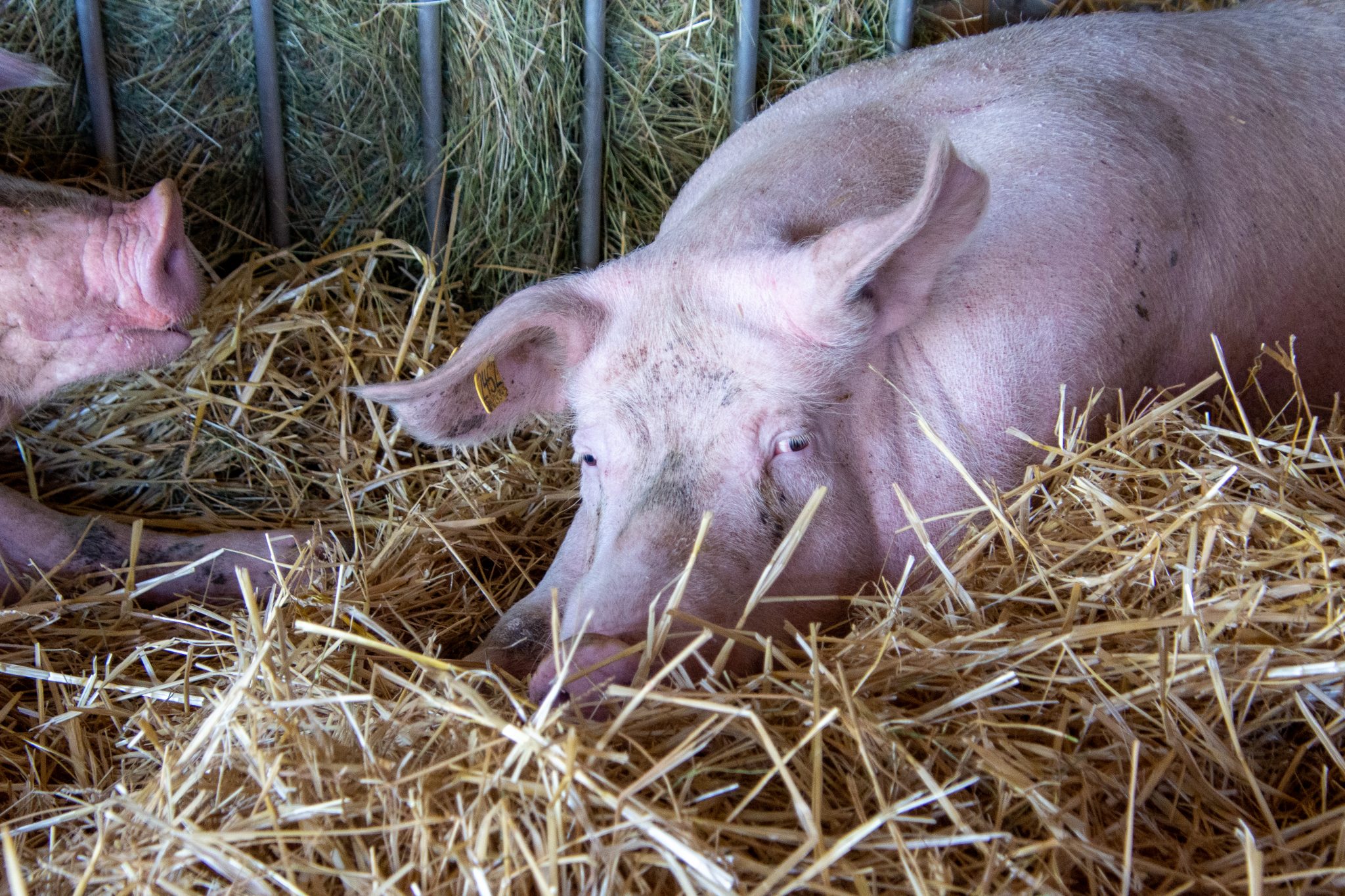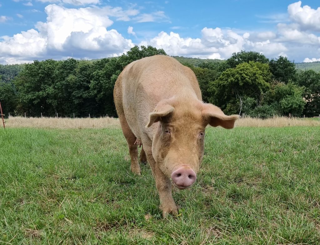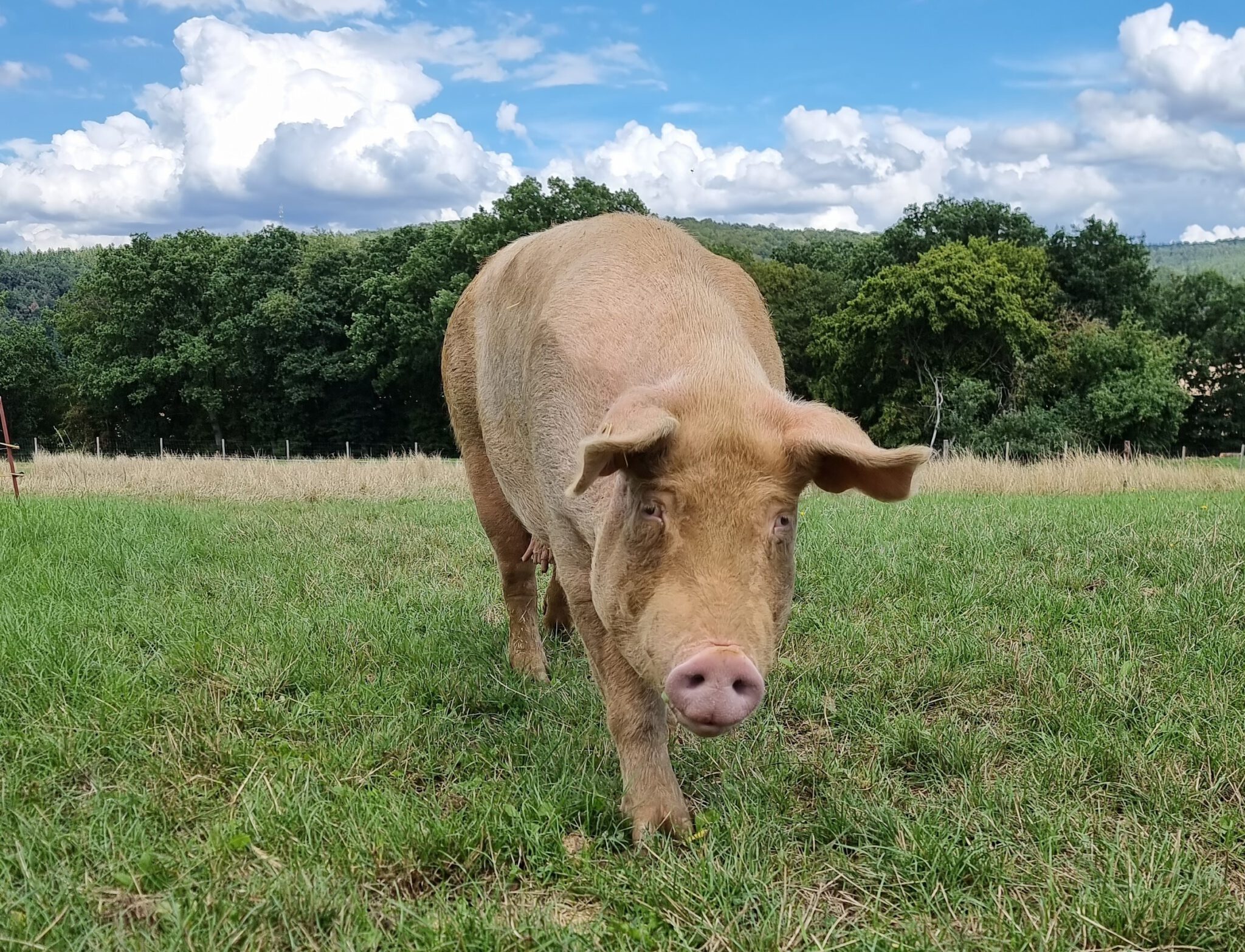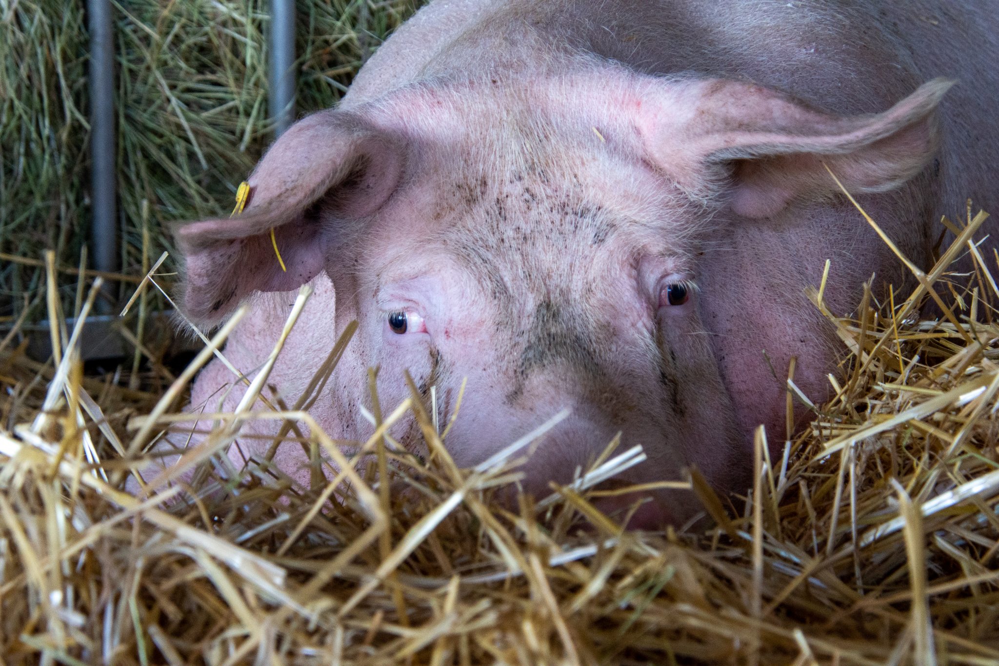 2452 steht auf ihrer Ohrmarke. Sie lebte in einem Zuchtbetrieb bevor sie zu uns kam. Als sie sich zum ersten Mal in weiches Stroh legen konnte, konnte sie sich noch gar nicht richtig freuen. All die neuen Reize überforderten und verunsicherten sie erstmal. Sie gehört allerdings zu den Sauen, die relativ wenige Schrammen haben. Sie hält andere meistens auf Distanz. Nach ein paar Tagen der Eingewöhnung ist sie langsam entspannter geworden und erkundet immer mehr ihrer neuen Umgebung. Sie trägt jetzt den Namen Deborah.