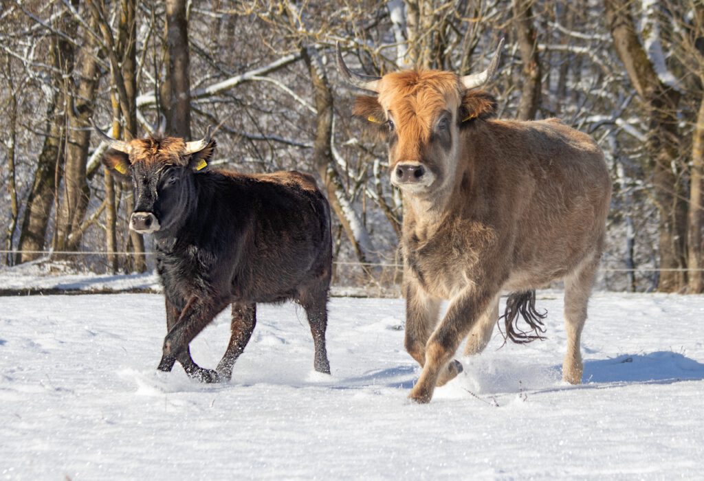 Eila ist am 28. Februar 2023 geboren. Sie ist ein Heckrind und damit eine Abbildzüchtung des ausgestorbenen Auerochsen. Sie ist in einem Weideprojekt aufgewachsen. Eila ist eher schüchtern und vorsichtig, kann sich aber auch ausgelassen freuen. Sie sollte per Weideschuss getötet werden, obwohl sie voller Lebensfreude steckt. Sie zog zusammen mit ihrer großen Schwester Eimi bei uns ein, die zugleich ihre beste Freundin ist. Hier haben sich beide unserer wilde Heckrinderherde angeschlossen. Den Sommer verbringt die Herde als Landschaftspfleger im UNESCO-Biosphärenreservat Rhön, wo sie Flächen offen hält und damit einen Beitrag zum Erhalt der Artenvielfalt leistet. Den Winter verbringen die Heckrinder ebenfalls auf großen Flächen in der wilden Rhön mit Wald und Bach.