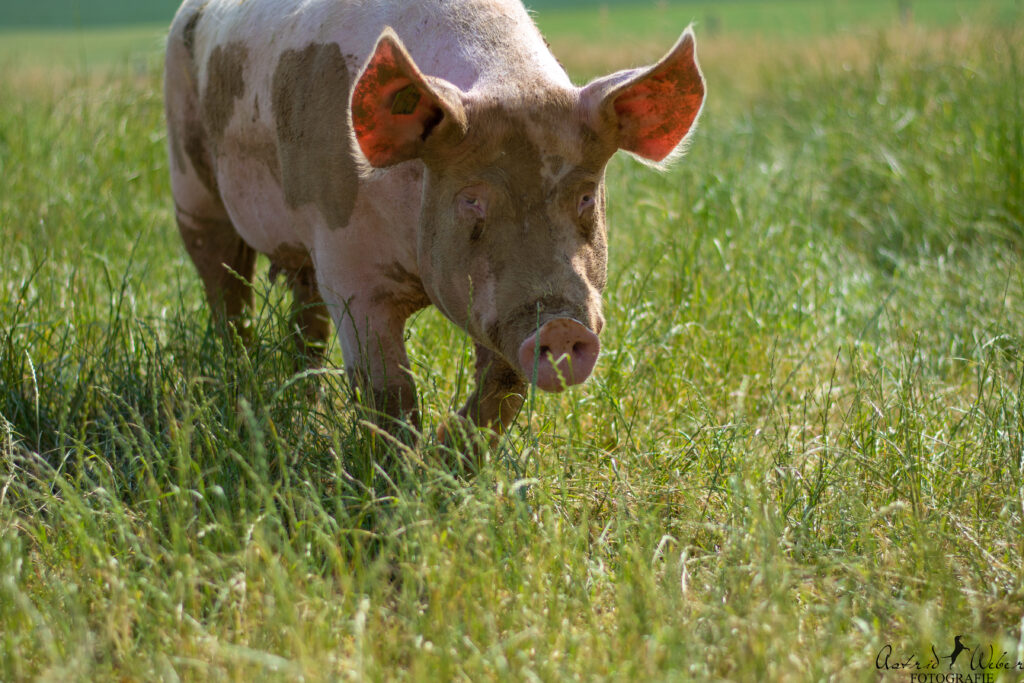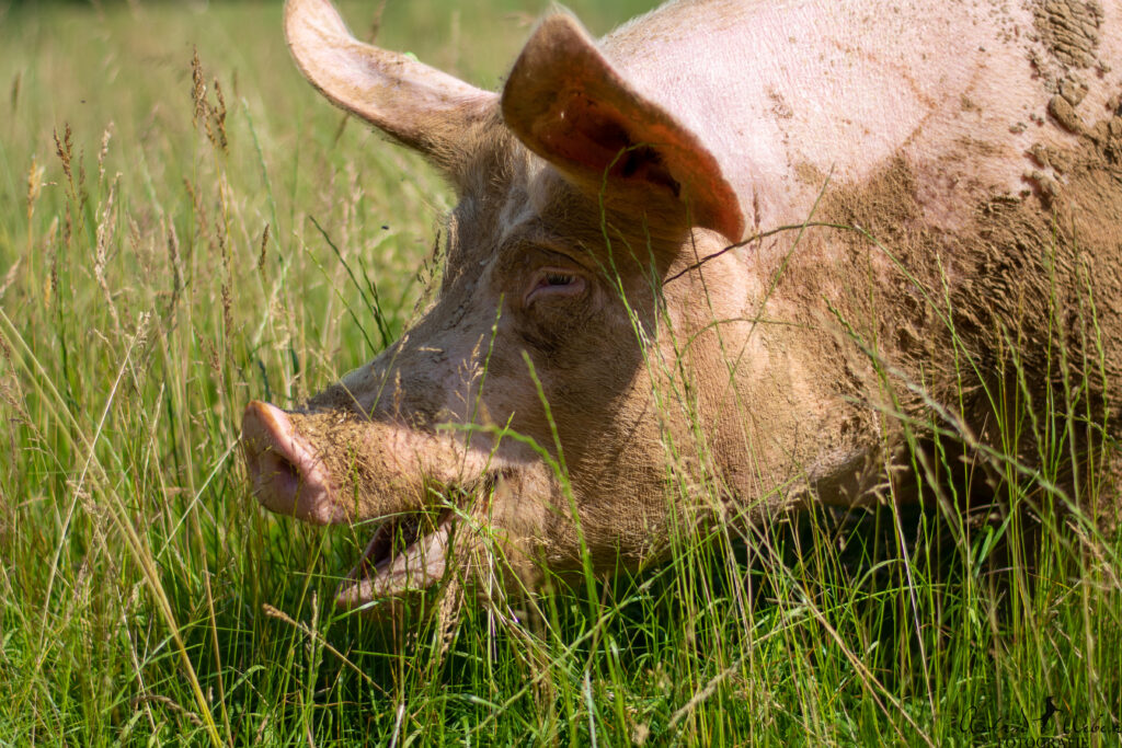 2179 steht auf ihrer grünen Ohrmarke. Mehr Grünes gab es in dem Betrieb, aus dem sie herkommt, nicht. Sie war dort lange eine fürsorgliche Muttersau und hatte nun ausgedient. Im Rahmen einer großen Sauenrettungsaktion kam sie zu uns. Nun heißt sie Gretje Glücksklee. Ihre großen Stehohren sind sehr auffällig. Ganz aufmerksam nimmt sie alle Geräusche wahr und genießt es, nun auch einfach Ruhe genießen zu können. Auch das weiche Stroh liebt sie sehr. Nach ihrer Ankunft war sie sehr erschöpft und musste sich erstmal erholen. Jetzt ist sie ein Lebensschwein und sucht noch Patenschaften.