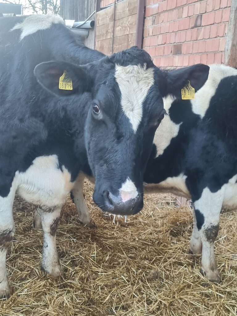 Kati ist am 15. März 2020 geboren. Dort wo sie lebte, ist eine Situation entstanden, die zu einem Rinderhaltungsverbot des Landwirts geführt hat. Daraufhin wurde Kati mit ihrer Herde vom Veterinäramt beschlagnahmt. Ihr Schlachttermin war bereits angesetzt, als das Veterinäramt uns fragte, ob wir Lebensplätze für einige der Tiere bieten können. Kati war eine der Lieblingskühe der Tochter vom Landwirt. Wir setzten alle Hebel in Bewegung, um die Herde vor dem Schlachttod zu bewahren. Wir haben für alle gute Plätze gefunden. Kati zog mit weiteren Rindern bei uns ein. Kati ist sehr freundlich und zeigt das mit liebevollem Abschlecken. Sie kam mit einigen Beulen und lahmend zu uns, weshalb eine tierärztliche Betreuung notwendig ist.