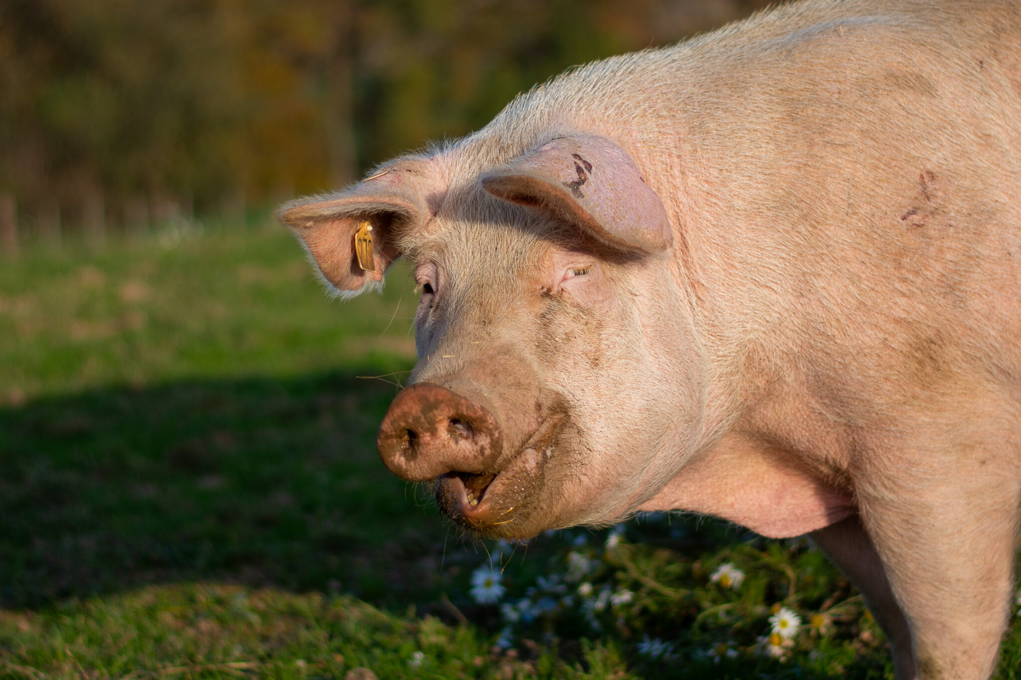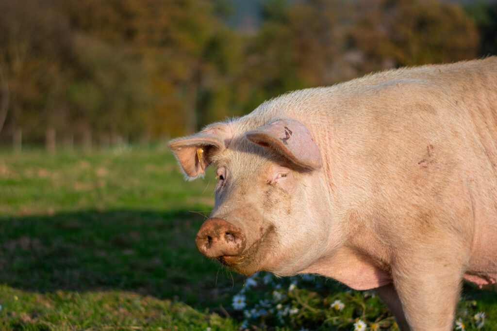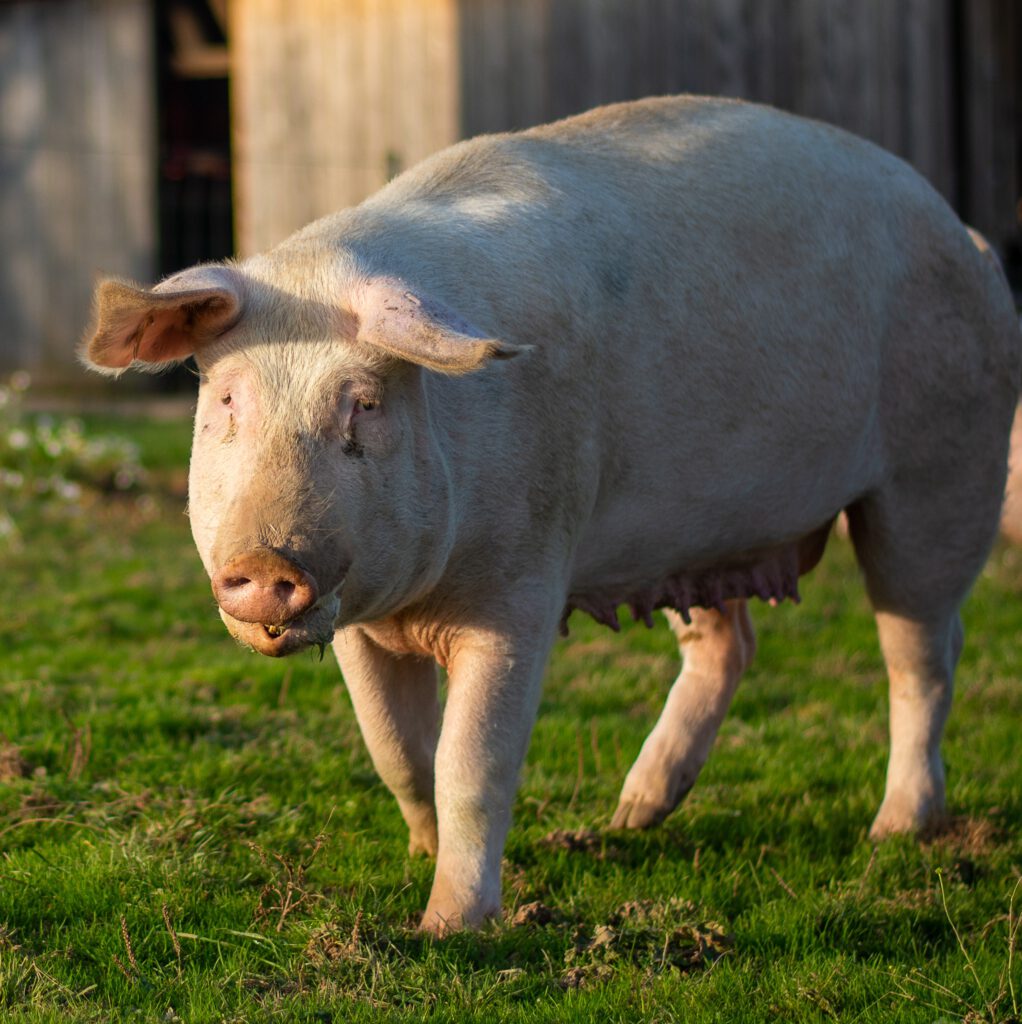 Sie war die Nummer 272. Nun heißt sie Susi Schnüffel. Sie hat ein bewegtes Leben hinter sich. Zunächst musste sie als Muttersau Ferkel gebären und aufziehen, die ihr dann weg genommen wurden. Diese Zeit ist ihr noch an der ausgeleierten Milchleiste anzusehen. Danach wurde Susi Schnüffel im Tierversuch für die Entwicklung eines Medikaments eingesetzt. Dank einer eingagierten Tierärzten führte sie der Weg danach nicht zum Schlachthof sondern zu uns. Seitdem ist sie ein Lebensschwein. Sie mag Streicheleinheiten und Schlammbäder, ist unkompliziert und einfach zufrieden mit ihrem jetzigen Leben.