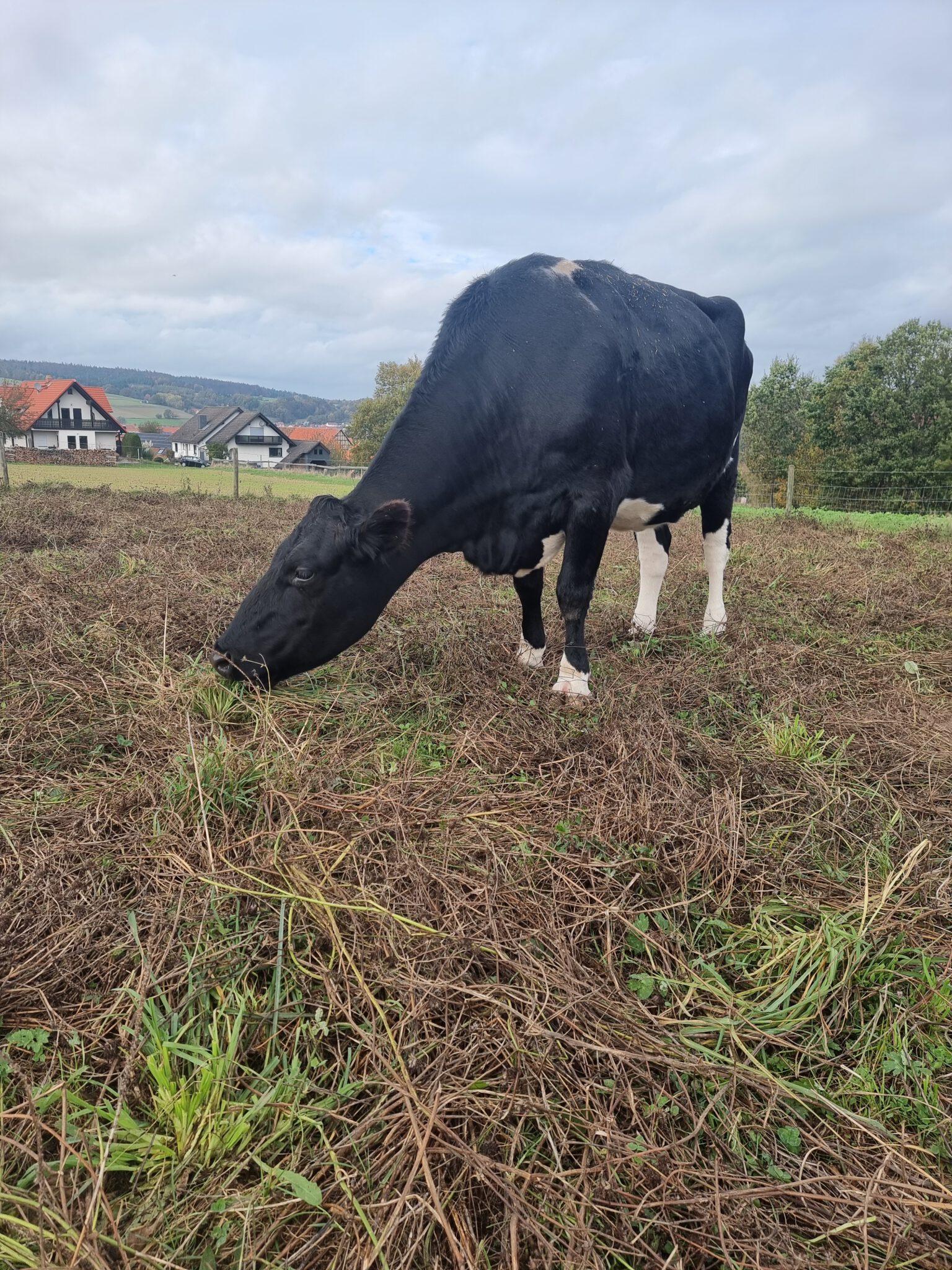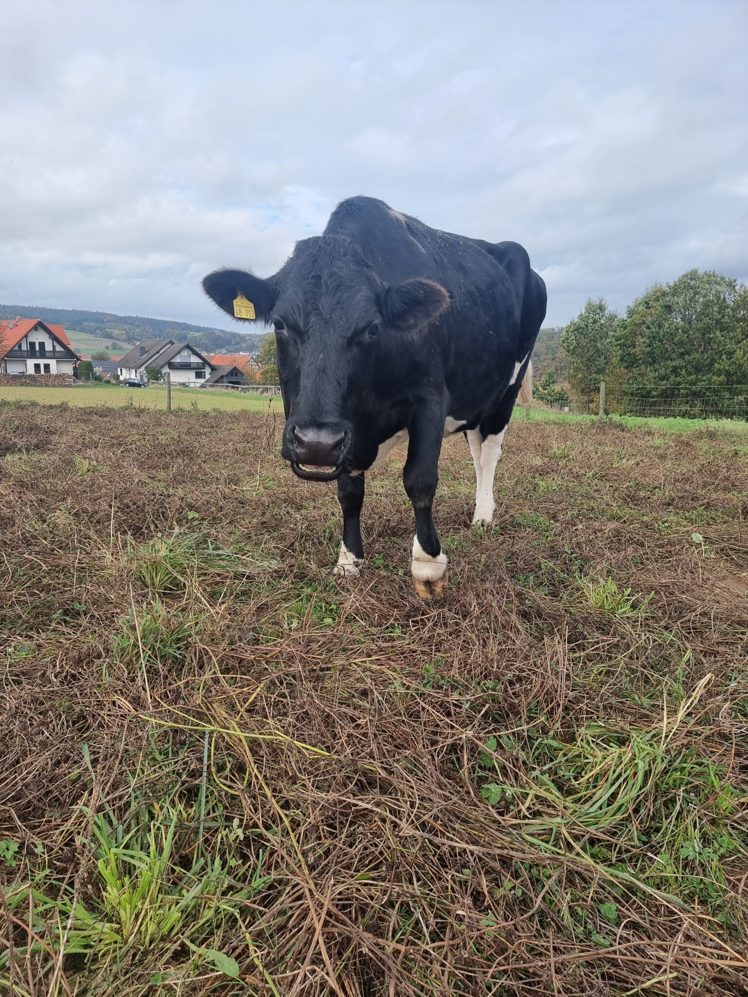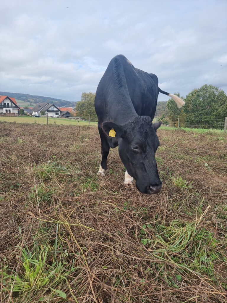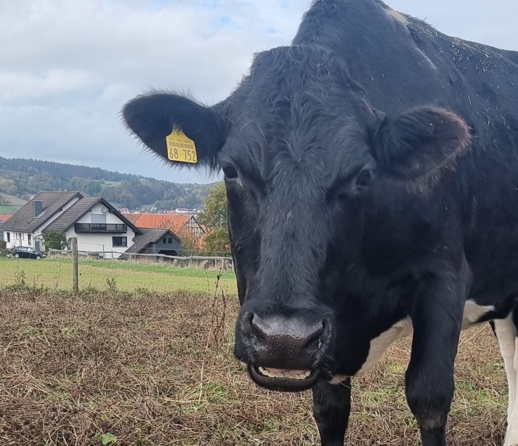 Welle war lange Zeit eine Milchkuh. Sie hat viele Kälber auf die Welt gebracht und durfte keines behalten. Als sie letztendlich nicht mehr produktiv genug war, sollte sie geschlachtet werden. Eine Mitarbeiterin des Betriebs wollte das nicht zulassen und holte sie zu sich auf den Hof.